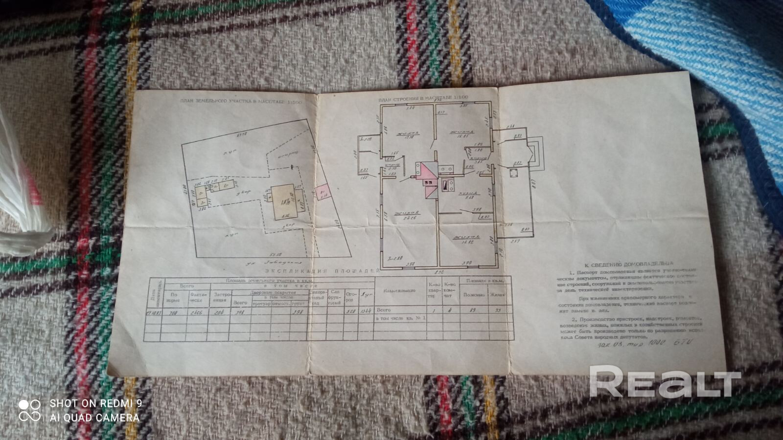 - Площадь участка
