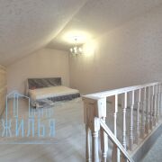 В доме есть 2 просторные жилые комнаты (одна проходная) на первом этаже и 1 комната на втором этаже с монтированной системой хранения. В доме большая светлая кухня, которая может служить одновременно и гостиной. На полу уложен ламинат, в санузле — плитка. Установлены окна ПВХ, хорошая металлическая дверь. Ремонт в доме выполнен в спокойных тонах. Установлен современный кухонный гарнитур. Электро плита. Дом продается частично с мебелью. В доме имеется оборудованный погреб.