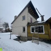 На улице Дзержинского на большом участке 10,26 соток среди многочисленных туй и декоративных кустарников разместился деревнный дом с окнами ПВХ и пристройкой из ГСБ и кирпича мансардного типа. Жилье требует ремонта.