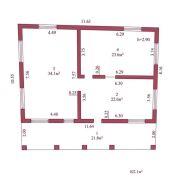 Общая площадь застройки 122, жилая 56, кухня 29,1 м/кв, состоит из 2-х изолированных комнат и просторная гостиная совмещенная с кухней 29,1 м/кв, большая терраса 25,5 м/кв, есть возможность сделать планировку под себя. Крыша - металлочерепица, окна-стеклопакеты ПВХ.