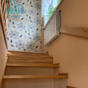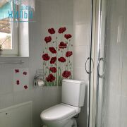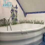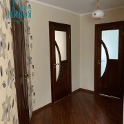 На полу в жилых комнатах лежит ламинат; в кухне, тамбуре, прихожей и санузлах – плитка (система «теплый пол»). Стены – обои + частично под покраску, потолки – гипсокартон.