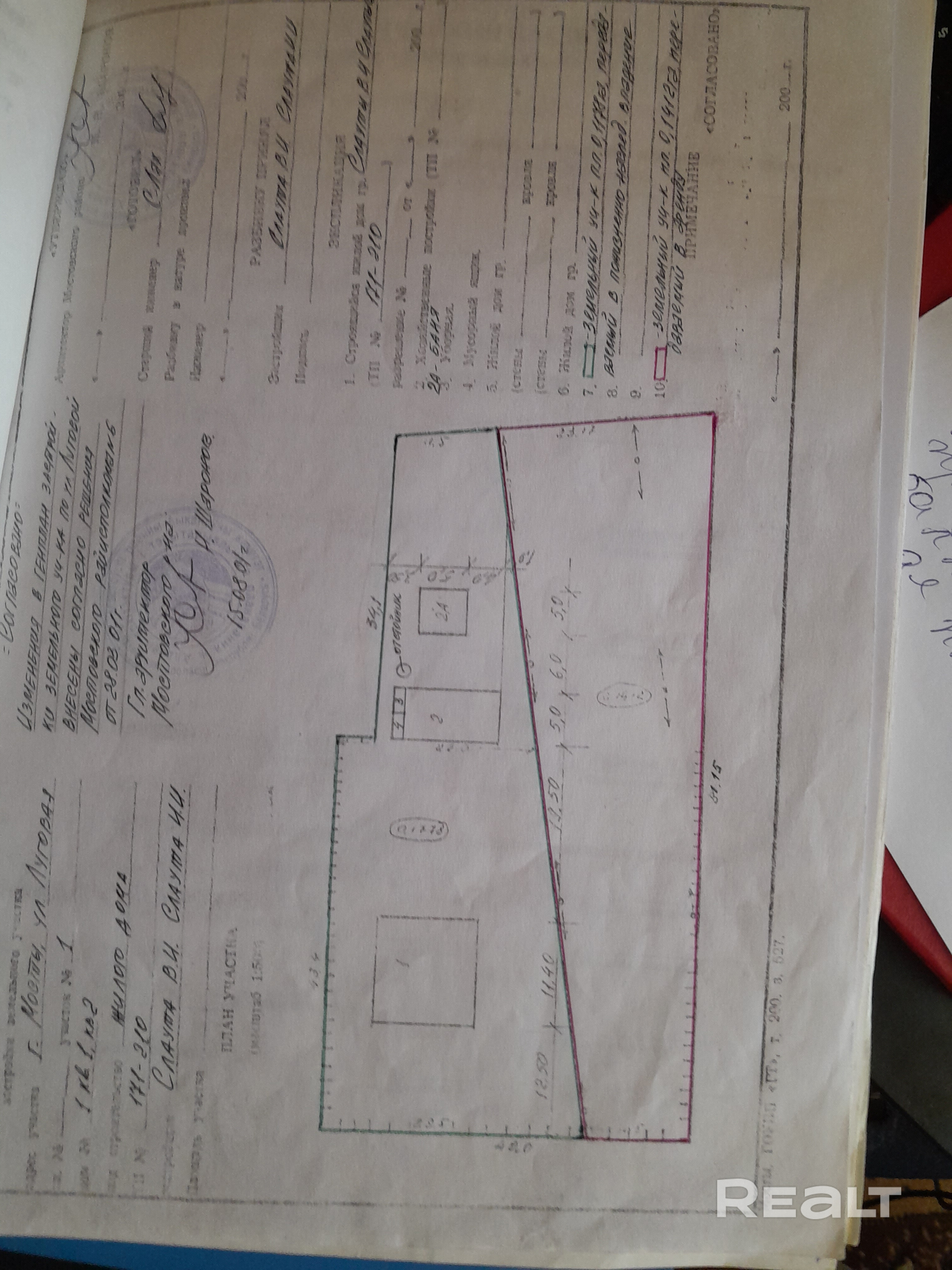 - Площадь участка
