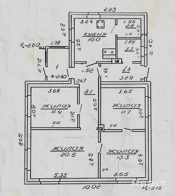 На участке построен дом на крепком, высоком и надежном фундаменте. Общая площадь дома 114 м. кв., состоит из 4 жилых комнат, кухни и подсобных помещений. Есть возможность сделать жилой мансарду с высокими потолками. В доме, благодаря высоким потолкам и большим окнам, внутри много воздуха и естественного света. Дом сухой, уютный, «дышится» в нём легко.