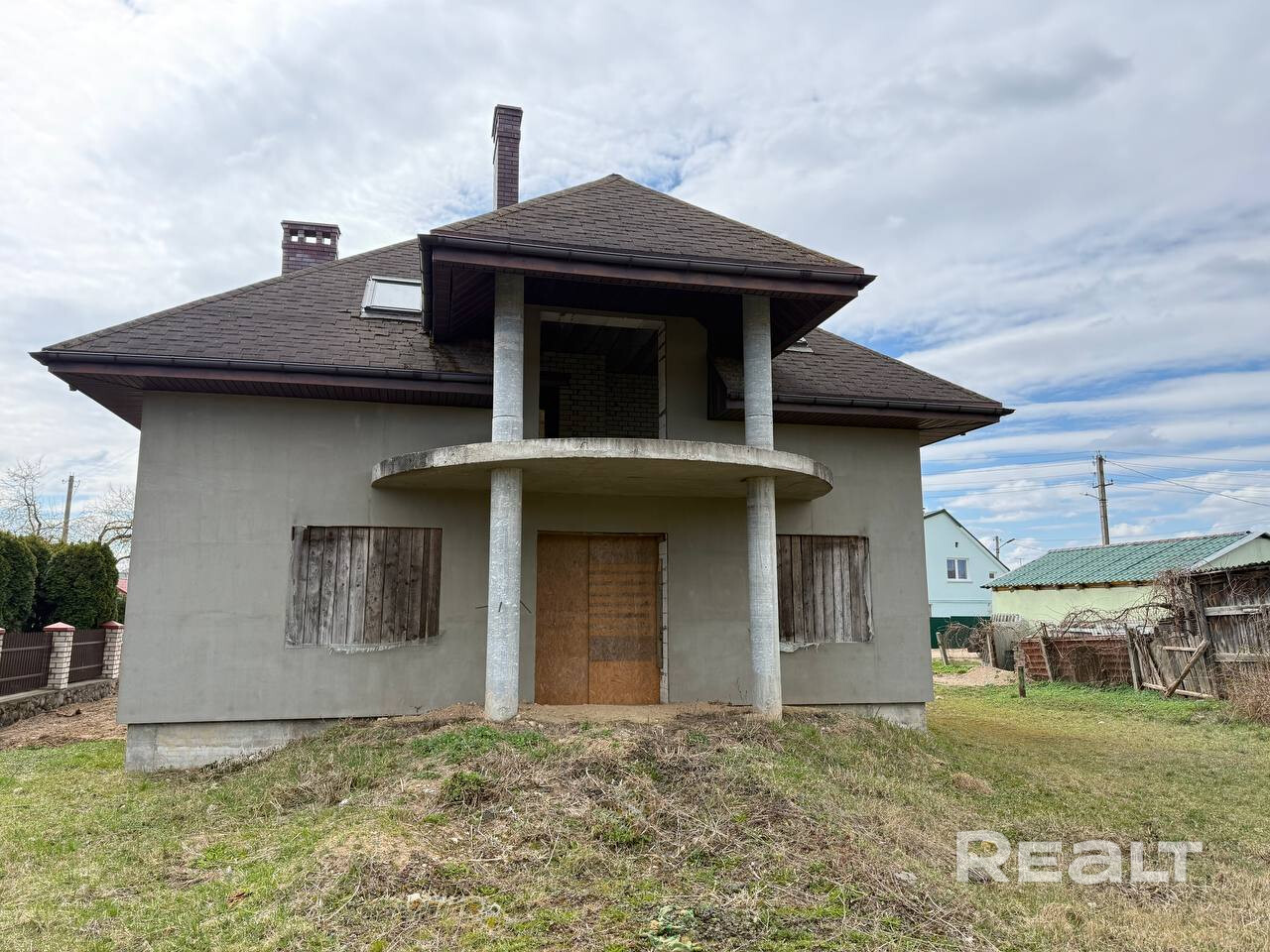 Дом в центре г. Гродно!!! Продается законсервированное незавершенное строение с участком на ул. Лелевеля Дом площадью 195,4/138,3м2, 5-комнатный одноэтажный мансардного типа, построен из газосиликатных блоков, крыша– битумная черепица.