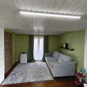 Продается садовый домик, вблизи д. Доржи, пригодный для круглогодичного проживания. Кухня с теплыми полами, варочная панель от газа-балона, в комнате есть печь-камин и установлен кондиционер. Совмещенный сан узел с водонагревательным бойлером, вся сантехника итальянская, стекло душевой кабины немецкое. Местная канализация 2х секционная (с переливом). Вода: скважина, для подачи по системе - гидрофор. Сам дом утеплен, обшит ОСБ плитой, обработанной. Имеется монсардный этаж, не оборудовался.