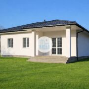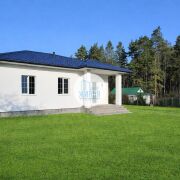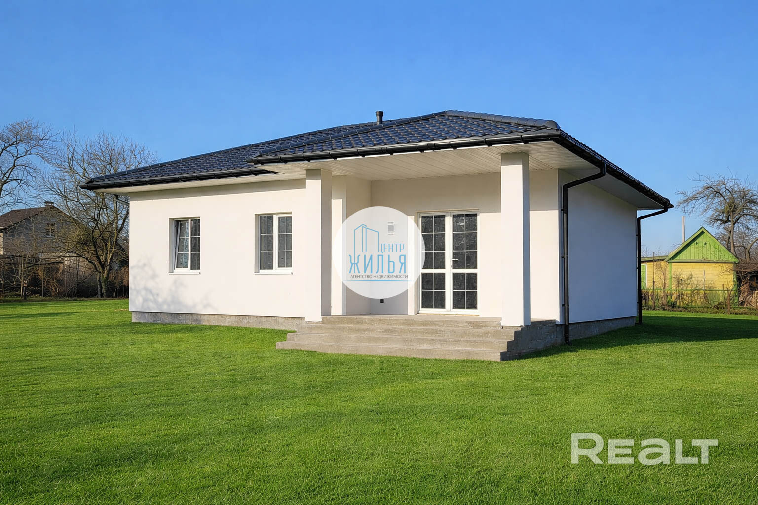 Домик 2025 г.п. с современной компактной планировкой (аналог евротрёшки), общей площадью 79,9 м.кв. Две отдельные комнаты, гостиная с выходом на террасу объединена с кухней, в кухню проведен вент. канал; просторный санузел с окном площадью 11.3 м.кв.