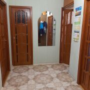 3 комнаты; 1 этах; полы утеплены, добавлены секции батарей; пол: ламинат/плитка; окна: стеклопакеты; входная дверь: металлическая; межкомнатные двери:массив.