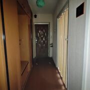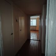 Квартира освобождена от мебели, осталась только кухня и шкафы в коридоре. Есть лоджия с полками, а также добротный подвал.
