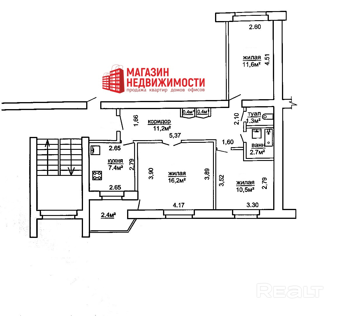 3-комнатная квартира на ул. Рогачевского, 13