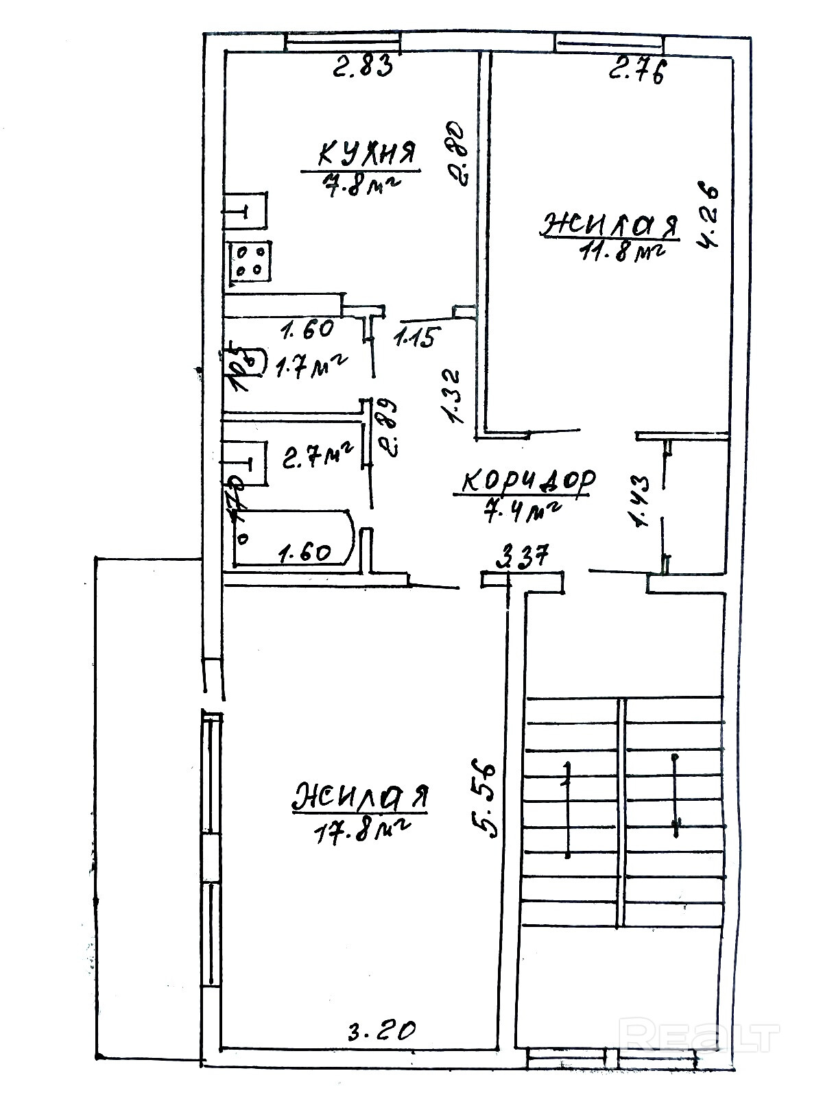 аг. Цирин, ул. Школьная, 1. Общая по СНБ 51,1 (49,2) кв.м. Жилая 29,6 кв.м. Кухня 7,8 кв.м. 2/2 этаж, панельный дом 1978 г.