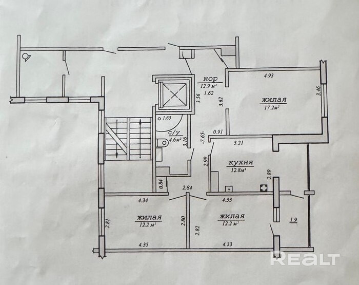Общая площадь квартиры по СНБ 73,8м2, жилая 41,6м2/кухня 12,8 м2