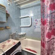 Санузел раздельный. Ванная комната облицована плиткой. Туалет — сайдинг.