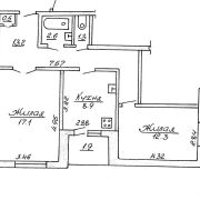 Общая площадь 55,9м2; жилая - 29,4м2; кухня – 8,9м2.