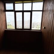 Лоджия остеклена и обшита деревом.