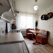 Входная металлическая дверь премиум класса. Двухкамерные стеклопакеты на окнах в двух комнатах. Стеклопакеты в кухне и гостиной. Материал полов: качественный износоустойчивый ламинат. В гостиной линолеум. В кухне и прихожей узорная качественная керамическая плитка.