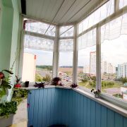 Уютная застекленная лоджия с приятным видом из окна.