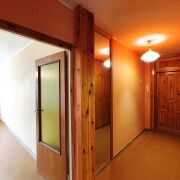 - пол доска массив покрыт ДВП, в санузле и ванной плитка,