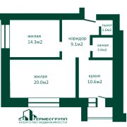 Общая площадь-59,2 м2, комнаты: 20 м2, 14,3 м2, кухня 10,6 м2. Квартира расположена на 3 этаже пятиэтажного дома.