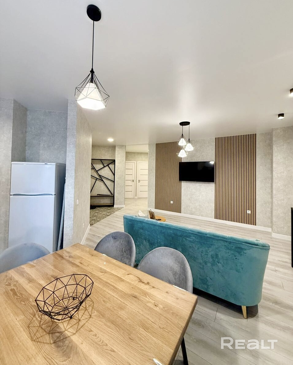 Комфортная 4-х комнатная квартира, с хорошим современным ремонтом в новом современном микрорайоне, дом 2023гп., монолит, этаж 3/16, отличная планировка, просторные комнаты, кухня-столовая-27,4м.кв., высокие потолки-2,74м., прекрасный вид из окна. Для ремонта были использованы качественные импортные материалы. Квартира полностью готова к проживанию, продается со всей мебелью, современная встроенная кухня. Металлическая входная дверь. Стеклопакеты. Пол ламинат, плитка. Стены обои. Потолок натяжной. Видеонаблюдение по периметру дома. В доме два лифта. Благоустроенный двор с зелёной зоной и детской площадкой, большая парковка для автомобилей. Развитая инфраструктура, в шаговой доступности находится все, что необходимо для комфортного проживания: школы, детские сады, гимназия, магазины, почта, аптека и др. Рядом остановки общественного транспорта, поликлиника. Отличные подъездные пути. Зеленая зона, рядом река Неман. Торги. Быстрый выход на сделку.