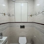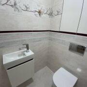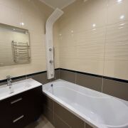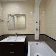 Санузел раздельный, включающий в себя современную инсталляцию и раковину для мытья рук. Ванная комната просторная и функциональная, оборудована дополнительной оригинальной подсветкой. Встроенная кухня полностью готова к использованию, новый холодильник Samsung входит в стоимость. Лоджия из кухни застеклена.