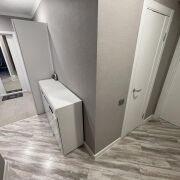 Выполнен современный ремонт в светлых тонах. На полу ламинат, на стенах обои, потолки натяжные. Входная металлическая дверь.