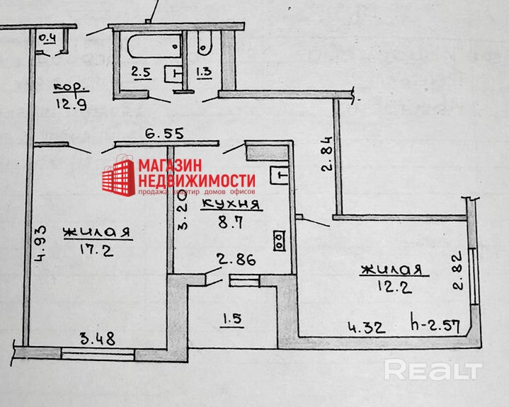 Общая площадь: 56.7 кв.м
