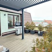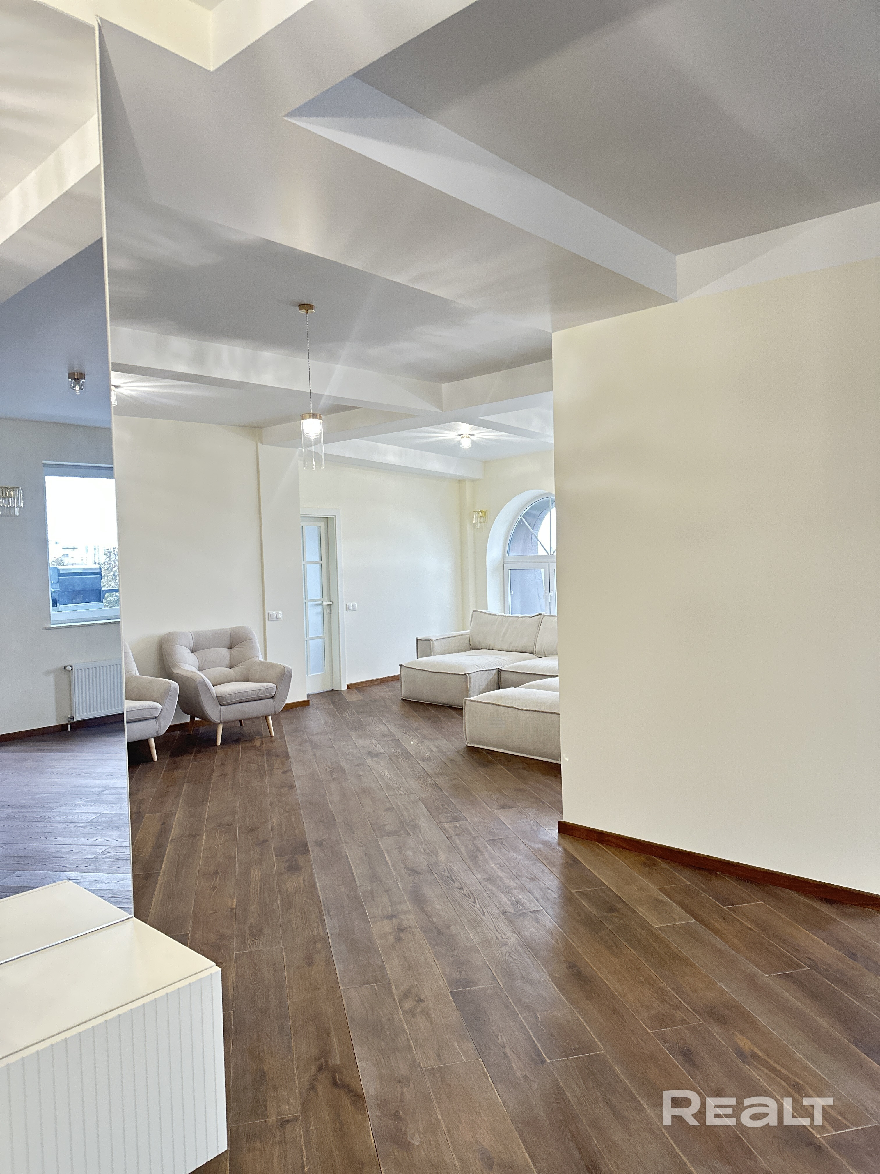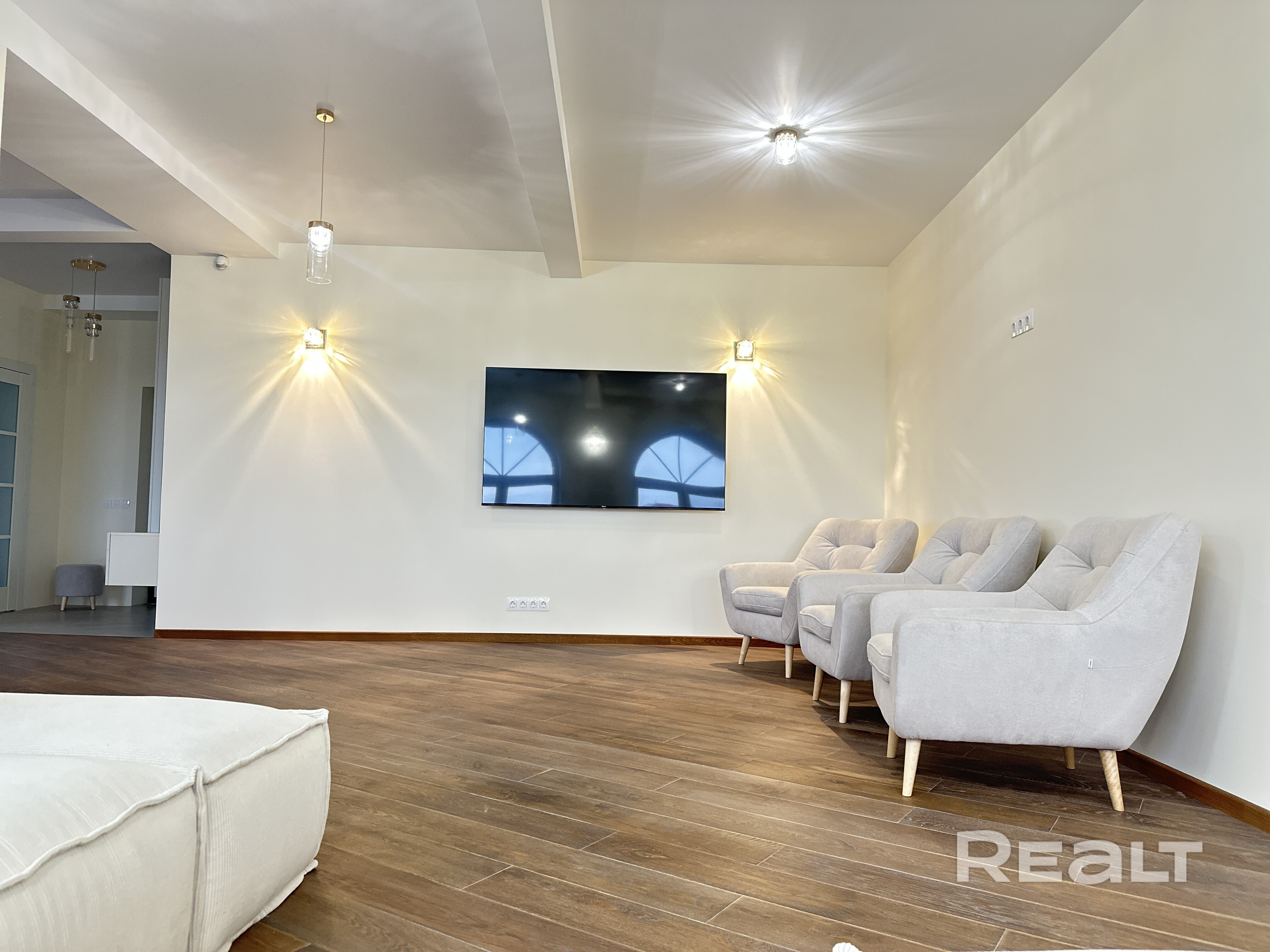 Центр Гродно. 3-комн. квартира 135 м² с террасой, новым ремонтом и мебелью Дом уникально расположен на возвышенности, что обеспечивает отличный вид на город и естественную обособленность от городского шума. Территория огорожена от транзита автомобилей — внутренний двор без машин, рядом большая парковка для жильцов. Состояние: Идеальное. Свежий качественный ремонт, объект ранее не эксплуатировался (никто не жил). Полный набор новой бытовой техники, ТВ 65 дюймов, 2 кондиционера, мебель, теплый пол