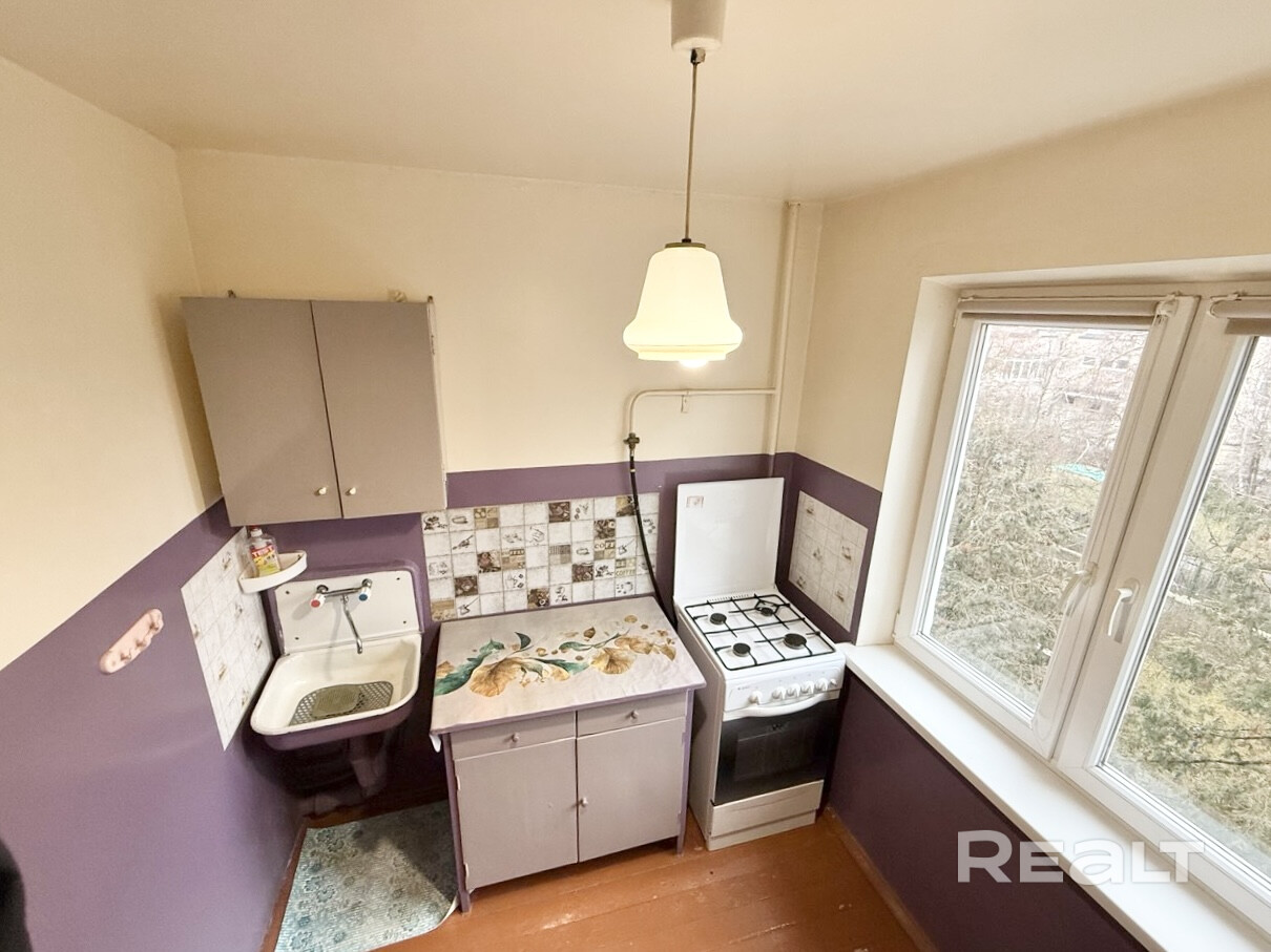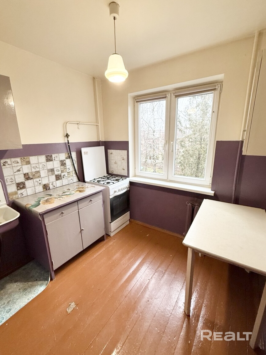 1- комнатная квартира, дом 1976гп., брежневская планировка, этаж 4/5. Квартира не угловая, светлая и теплая. Деревянная входная дверь; счетчики учета воды; стеклопакет к кухне. Потолок снежка. Стены обои. Полы дощатые. Балкон застеклен-алюминевая рама и отделка сайдинг. Домофон. Имеется подвал. В доме отличные соседи, что немаловажно для комфортного проживания. В шаговой доступности находится все, что необходимо для комфортного проживания: зеленый двор, стоянка для авто, остановки общественного транспорта, парк для отдыха, Церковь, магазины продуктовые и хозяйственные, поликлиника, областная больница, банки, почта, детские сады, школы, гимназии, баня, кафе, рестораны, бассейн, минирынок Форты. Рядом зеленая зона отдыха Пышки и река Неман.
