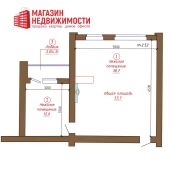 Площадь 53,7 кв.м. Когда помещение было квартирой, то имело следующие характеристики помещений, кв.м.: комнаты 18,9 и 12,0; кухня 7,1; туалет 1,3; ванная 2,5, коридор 8,3; лоджия 3,0. Возможно восстановить базовую планировку или спроектировать иную.