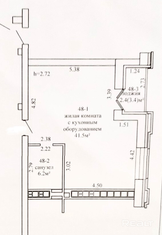 - Жилая — 41,5 м2