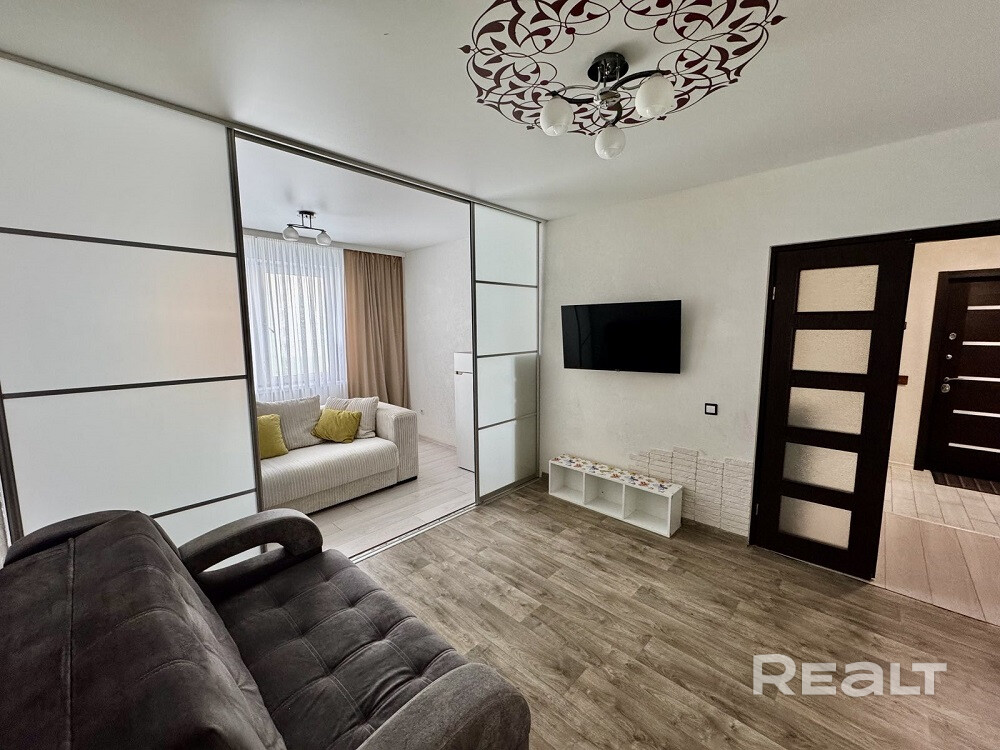 В продаже двухкомнатная квартира в м-не Ольшанка, по ул. Огинского, 3А. Квартира расположена на 5/9 этажного панельного дома 2017 года постройки Общая площадь 61,8 м.кв.(по СНБ 64 м.кв.), жилая 32,1 м.кв., кухня 11,8 м.кв. Высота потолков 2,64 м. Квартира полностью готова к проживанию. Окна – ПВХ; материал полов – ламинат, в кухне – плитка, на стенах обои. Санузел раздельный, облицован плиткой. Имеется застекленная лоджия в спальне. Входная дверь металлическая. Будущим собственникам остается кухонный гарнитур, стол, стулья, посудомоечная машина, холодильник, встроенные шкафы, диваны, телевизоры. В доме установлено видеонаблюдение, за квартирой закреплен подвал. Во дворе парковка для автомобилей с достаточным количеством парковочных мест, современная детская площадка. В шаговой доступности: школы, детские сады, магазины, ТЦ, поликлиника остановки общественного транспорта.