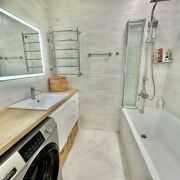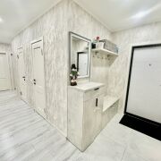 9 этаж 9-тиэтажного дома 2020 года постройки, материал стен – панель. Общая площадь 81.2 кв.м., жилая 44.9 кв.м., кухня 11.7 кв.м. Окна –ПВХ . Сан. узел раздельный, облицован плиткой. Материал полов – ламинат, плитка. Квартира имеет полноценные три спальни и гостиную совмещённую с кухонной зоной, заменена вся электрика застройщика, с проведением отдельных линий по комнатам и добавлением отдельных линий на мощные электроприборы, продуманы проходные выключатели, ночная подсветка, розетки в зоне окна. Есть возможность сделать видеозвонок. Газ обрезан, стоит электрическая варочная панель. Техника на кухне BOSCH : посудомоечная машина, варочная поверхность, духовой шкаф, холодильник, стиральная машина. Интернет проведен в каждую комнату под предполагаемые рабочие-учебные места. Потолки в комнатах родные, в коридорах, санузле и ванной - гипсокартон. В санузле встроенная инсталляция. Имеется водонагреватель ( бойлер), который отлично спасает во время отключения горячей воды в районе. Двери межкомнатные деревянные, дверные замки магнитные, в коридоре зона прихожей положена плитка, мебель сделана под заказ.