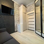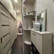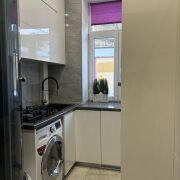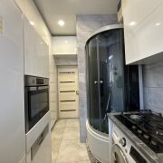 Кухня оснащена современной техникой.Есть место для стиральной машины и душевой кабины.Пространство квартиры распределено практично и удобно.