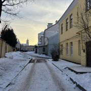 Прекрасное местоположение дома, тихий большой двор с видом на Фарный костел.Рядом все главные достопримечательности города, авто и ж/д вокзалы, кафе , рестораны, магазины.