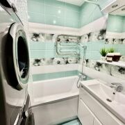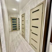 8 этаж 9-ти этажного панельного дома 2017 года постройки. Общая площадь 80 кв.м., жилая – 44.5 кв.м., кухня 11.8. Окна – ПВХ. Сан. узел раздельный, облицован плиткой, установлена стиральная и сушильная машина. Материал полов – ламинат, плитка, материал стен – обои. Квартира продается со встроенной мебелью и техникой.
