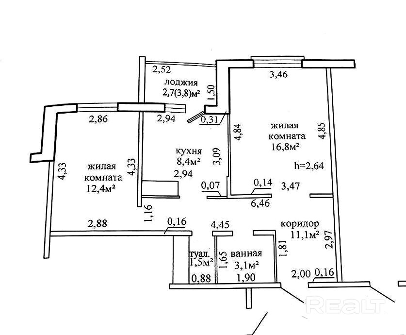 3 этаж 9-тиэтажного дома 2011 года постройки, материал стен – панель. Общая площадь 56.9 кв.м., жилая 31.5 кв.м., кухня 9.2 кв.м. Окна – ПВХ. Сан. узел раздельный, туалет облицован плиткой, ванна без плитки. Материал полов – ламинат, плитка.