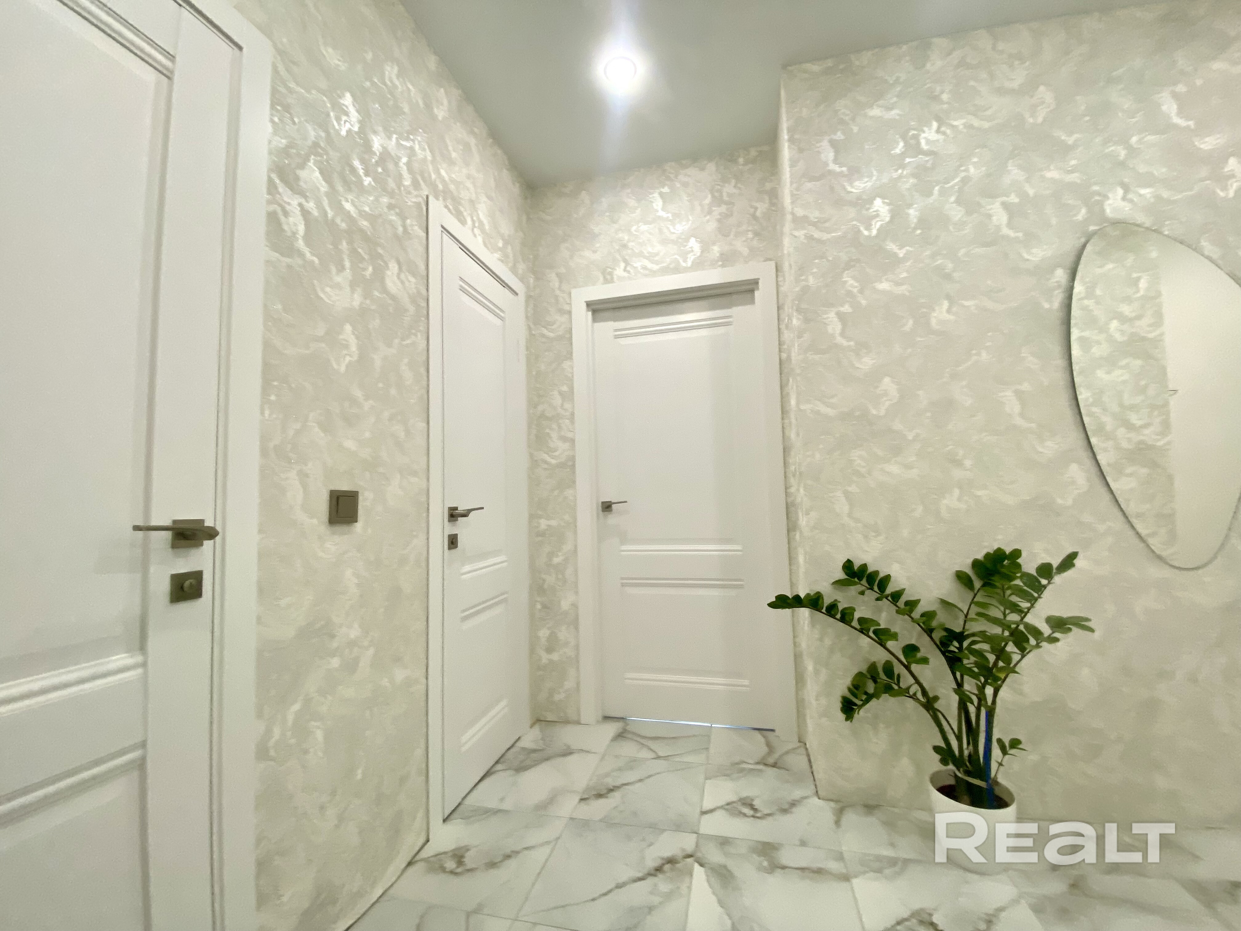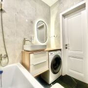 В квартире выполнен качественный ремонт, использовались дорогостоящие материалы. Качественные входные и межкомнатные двери с хорошей фурнитурой, магнитными замками, скрытыми петлями; полы ламинированные, в коридоре и санузле-плитка. Санузел раздельный, стены облицованы современной плиткой; потолки натяжные, хорошее освещение. Качественная кухонная мебель с встроенной бытовой техникой. Окна и балконные рамы ПВХ, с системой защиты от детей. Выходы на две просторные лоджии расположены в жилых комнатах.