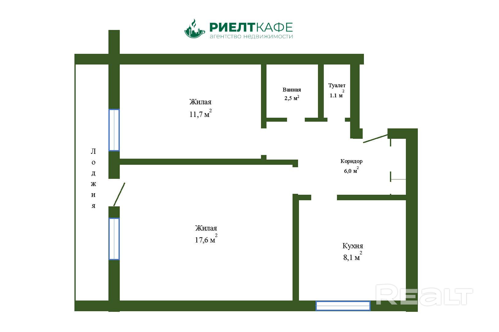 Двухкомнатная квартира с просторной лоджией в кирпичном доме