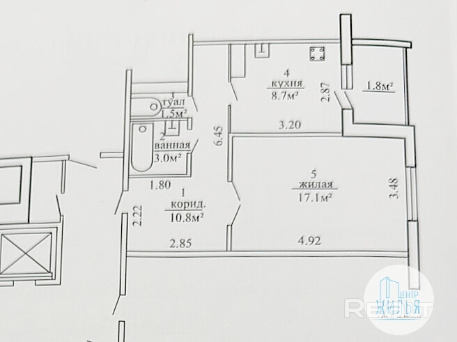 Просторная 1-комнатная квартира в микрорайоне Вишневец.