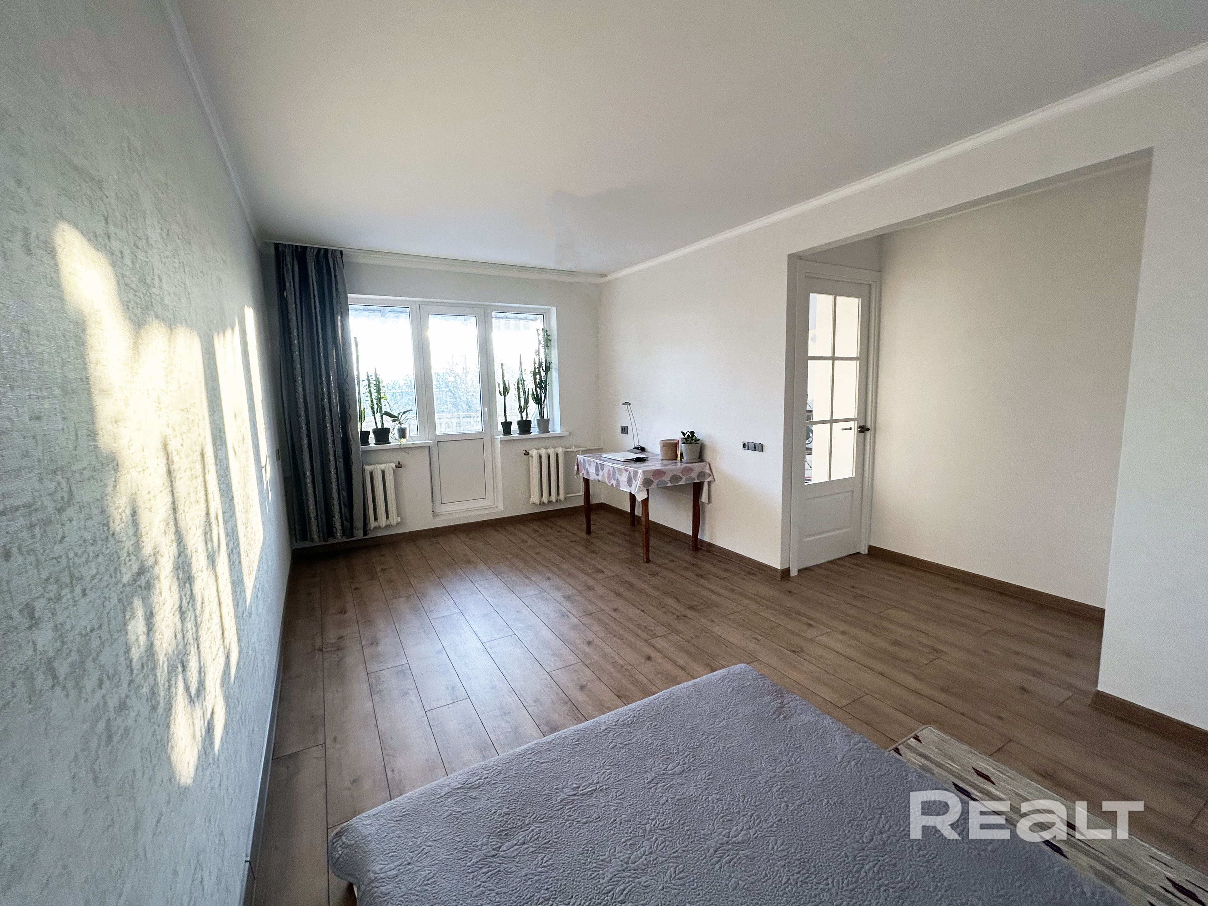 В квартире выполнен капитальный ремонт в 2025 году. Установлены окна ПВХ. Заменена электрическая проводка, канализационные трубы. Стены и потолки выровнены, залита стяжка. Напольное покрытие – ламинат одним контуром, в санузле плитка. Отличного качества межкомнатные и входная дверь. Совмещенный санузел облицован плиткой, новая сантехника. Есть навесной балкон с живописным видом на сквер. За квартирой закреплена подвальная ячейка.