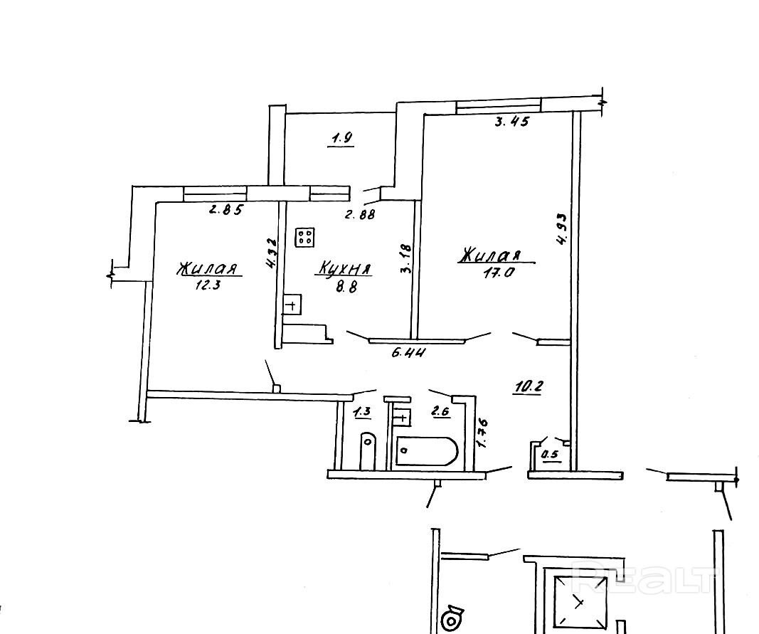 2-комнатная квартира по адресу ул. Кабяка д. 12/3