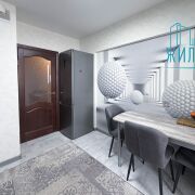 Во всех комнатах – окна стеклопакеты ПВХ, пол – ламинат, зона у входной двери, кухня и сан.узел (раздельный) – плитка, потолки — натяжные , стены – обои, входная металлическая дверь. Лоджия застеклена.