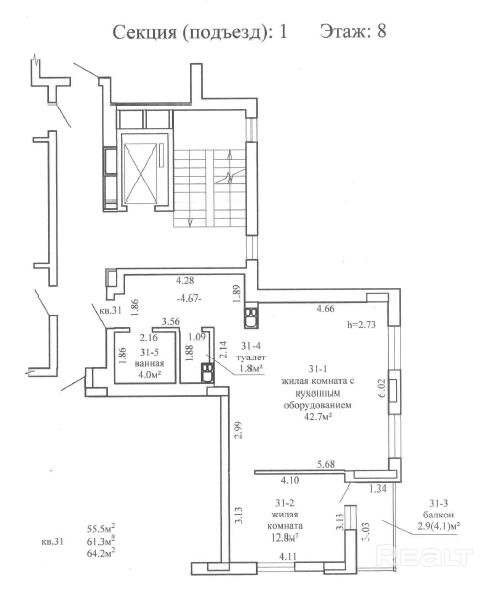 55.5 м²