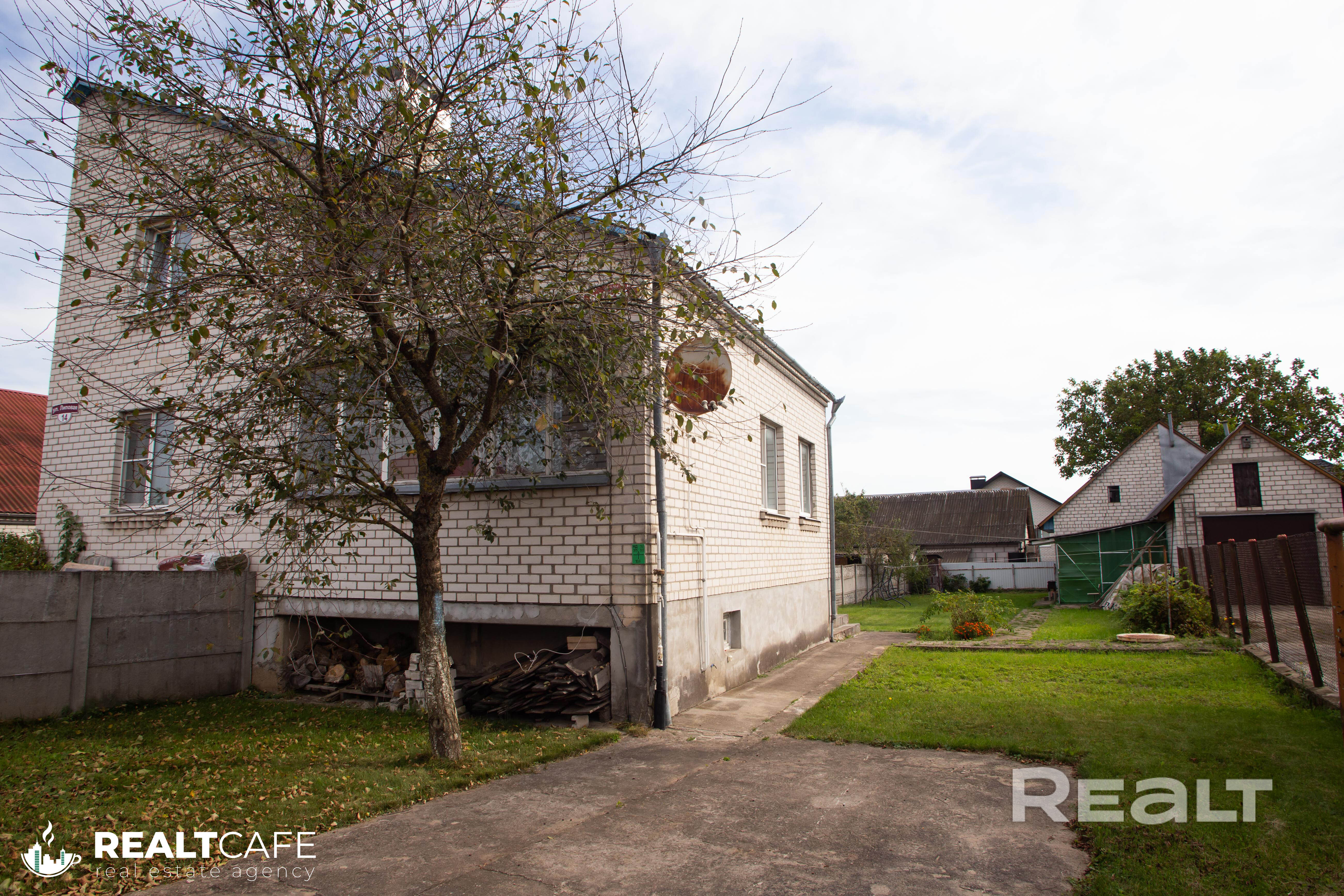 В доме все коммуникации - отопление (газовый котёл и твердотопливный), центральное водоснабжение (подогрев воды от газовой колонки), канализация - выгребная яма, по улице проходит центральная. Имеется большой подвал под всем домом.