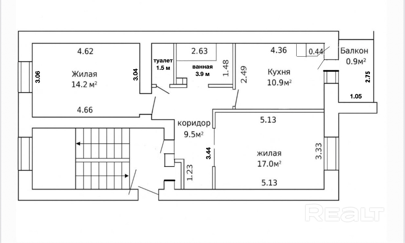 - Общая площадь: 57,9 м2 (по СНБ)