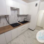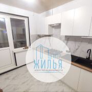 Кухня 8,8 м.кв. с выходом на лоджию. На кухне сделан новый ремонт – стены выровнены и окрашены, пол – керамогранит. Встроенная кухня с зонированной подсветкой. Газовая варочная панель, также есть вывод под посудомоечную машину и усиленный электрический кабель под духовой шкаф.
