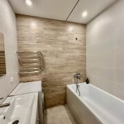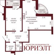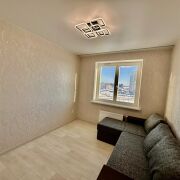 5 этаж 19-тиэтажного дома 2023 года постройки, материал стен – панель. Общая площадь 64.0 кв.м., жилая 42.9кв.м., кухня 26.4кв.м. Окна – ПВХ. Сан. узел раздельный, облицован плиткой. Материал полов – ламинат, плитка.