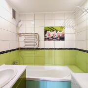 Материал стен кирпич, газосиликатные блоки. Утепленная лоджия, установлены двухкамерные стеклопакеты, благодаря чему даже зимой температура на балконе комфортная. Санузел – раздельный. Просторная ванна 3,2 м2. Санузел 1,9 м2, дополнительный умывальник в санузле.