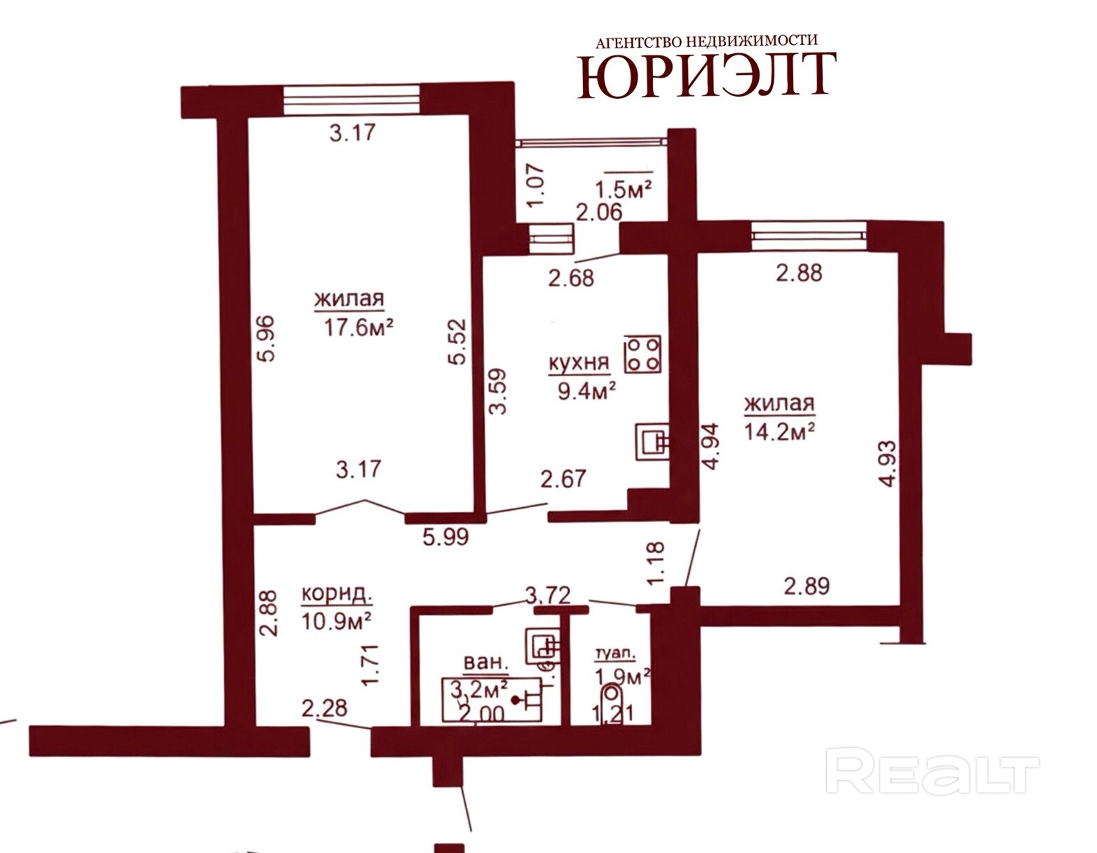 57,2/31,8/9,4 м2