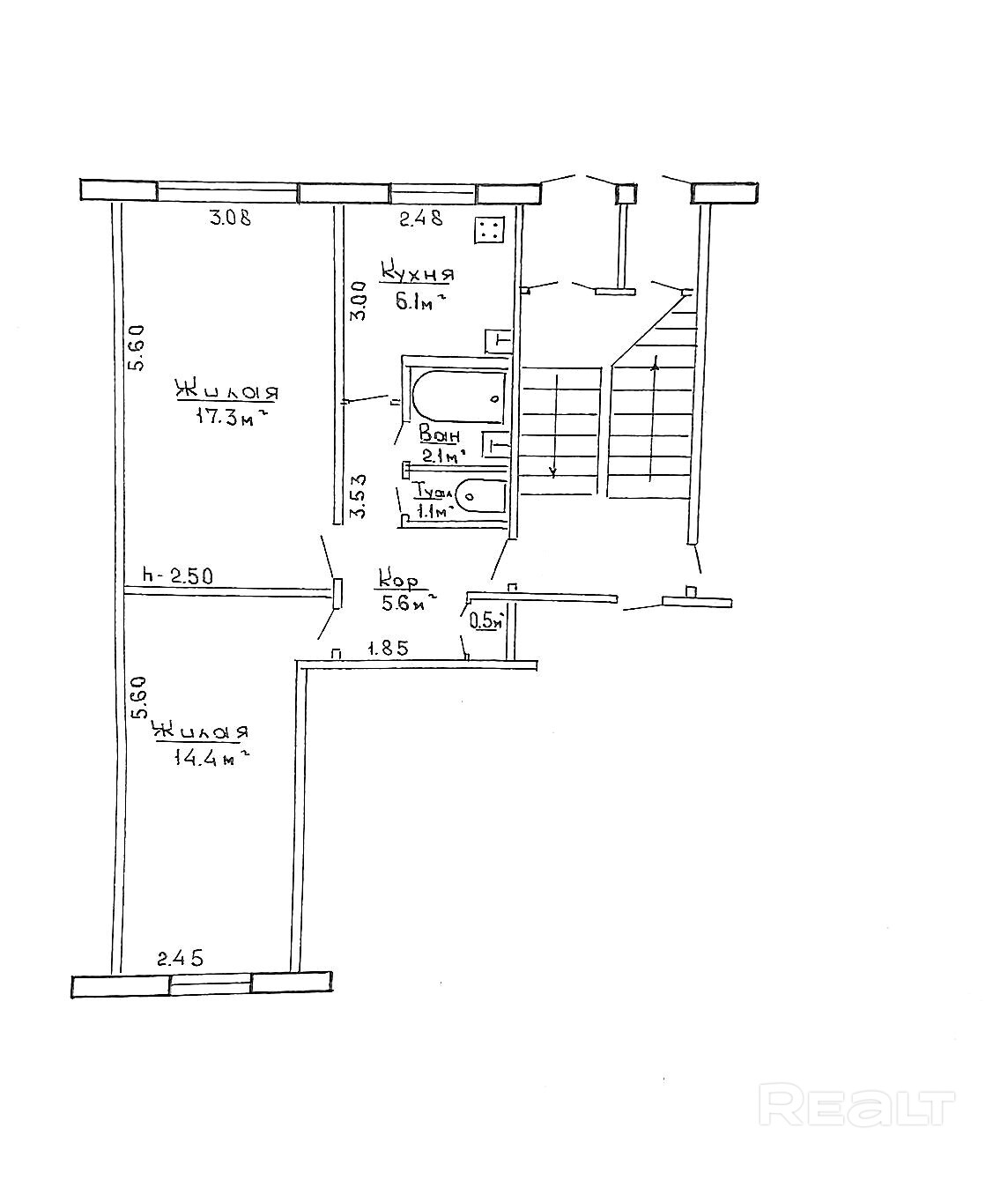 Площадь общая 47.1, жилая 31.7,кухня 6.1 м2.